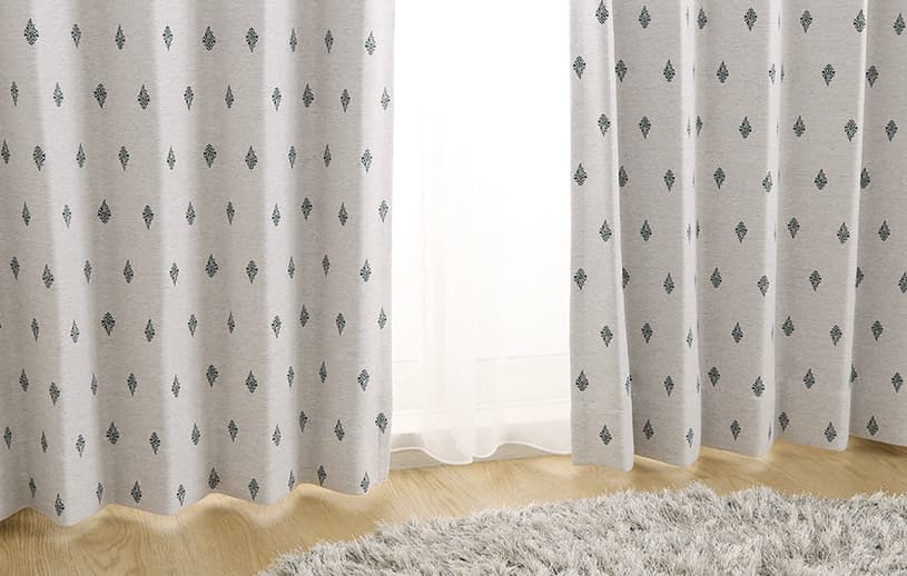 キッズ 〜ロザー〜 アイボリー 【撮影カーテン仕様】ヒダ数:DX 1.5倍ヒダ(2つ山)【撮影コーディネート】レース:〜コモン〜 ホワイト デザイナー:上岡 お天気によって見え方が変わるインテリアたちをムーディーにコーディネートできるよう研究しています! ダイヤ柄?それともダマスク柄? 一見ダイヤ柄のシンプルなカーテンに見えますが、目を凝らすとダマスク柄モチーフの植物が繊細に描かれています。